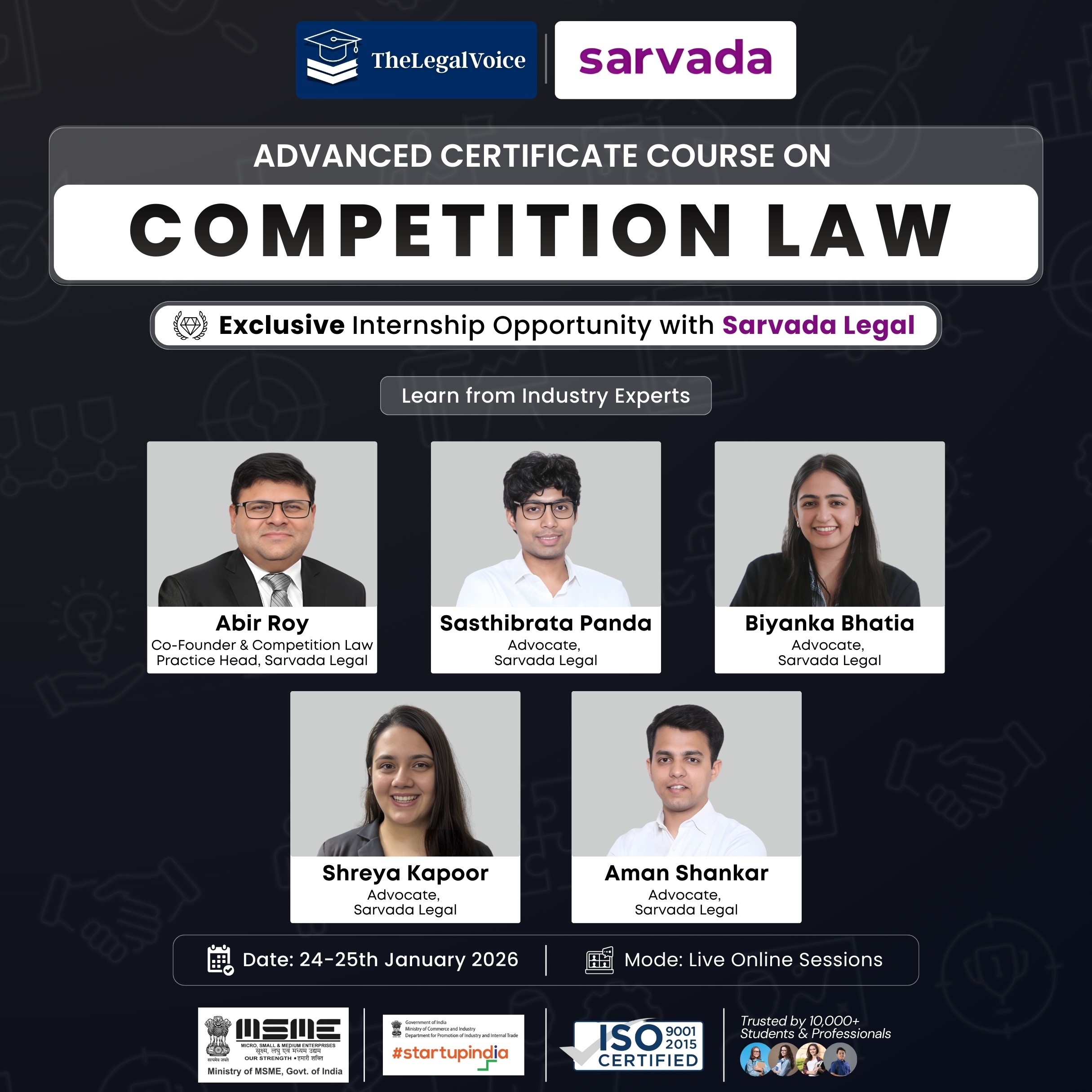Advanced Certificate Course on Competition Law by TheLegalVoice in collaboration with Sarvada Legal Courses by TheLegalVoice • January 11, 2026 Advanced Certificate Course on Competition Law by TheLegalVoice in collaboration with Sarvada Legal Read More »
