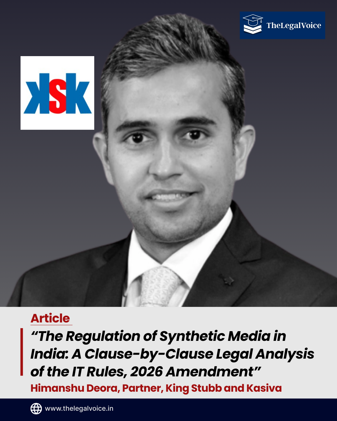 Article: “The Regulation of Synthetic Media in India: A Clause-by-Clause Legal Analysis of the IT Rules, 2026 Amendment” by Himanshu Deora, Partner, King Stubb and Kasiva Law Firm News • February 23, 2026 Article: “The Regulation of Synthetic Media in India: A Clause-by-Clause Legal Analysis of the IT Rules, 2026 Amendment” by Himanshu Deora, Partner, King Stubb and Kasiva Read More »
