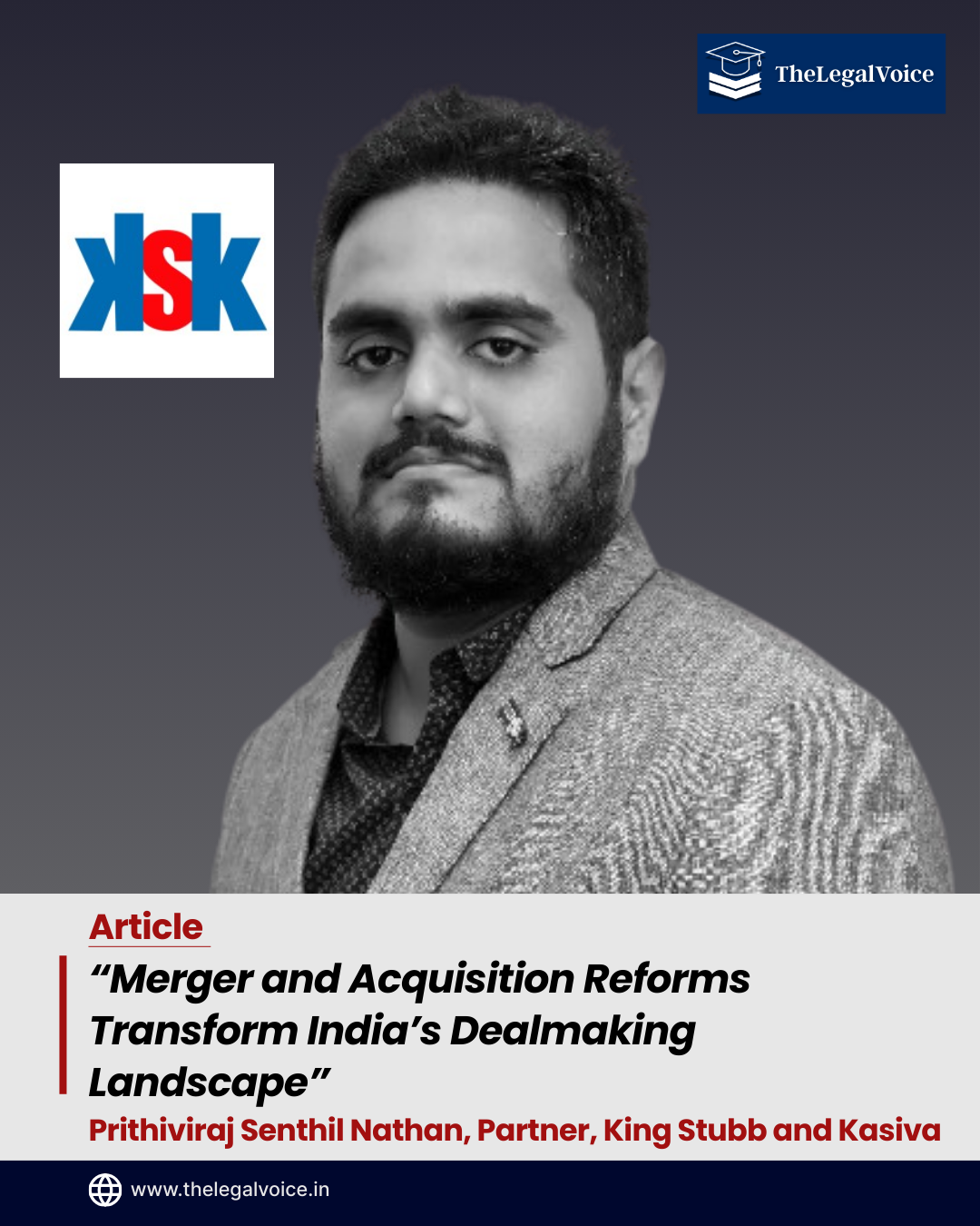 Article: “Merger and Acquisition Reforms Transform India’s Dealmaking Landscape” by Prithiviraj Senthil Nathan, Partner, King Stubb and Kasiva Law Firm News • February 23, 2026 Article: “Merger and Acquisition Reforms Transform India’s Dealmaking Landscape” by Prithiviraj Senthil Nathan, Partner, King Stubb and Kasiva Read More »